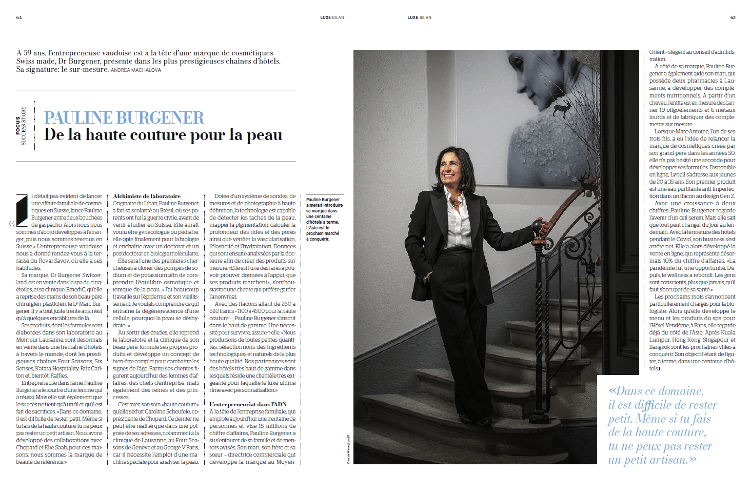 Discover an extract of the article below featuring Dr. Pauline Burgener in Bilan Luxe Magazine