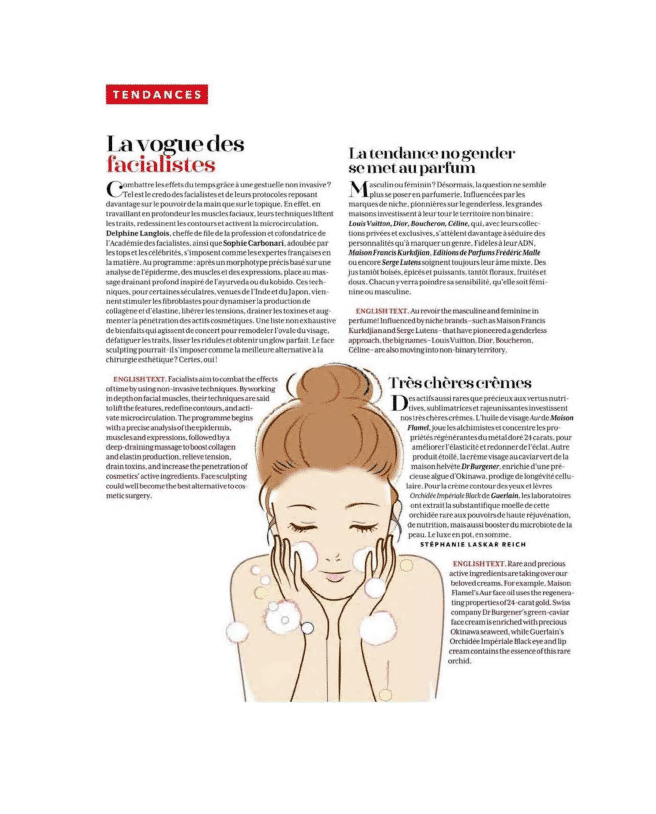 Discover an extract of the article below featuring Dr Burgener Switzerland Treatments in Palace Costes Magazine21 septembre 2023 – N°121 A title Image Box text Dr Burgener Communication Bilan Luxe: “Pauline Burgener, De la Haute Couture pour la Peau” Luxe Tentations: Dr Burgener Switzerland: beauty enriched with Vitamin C+