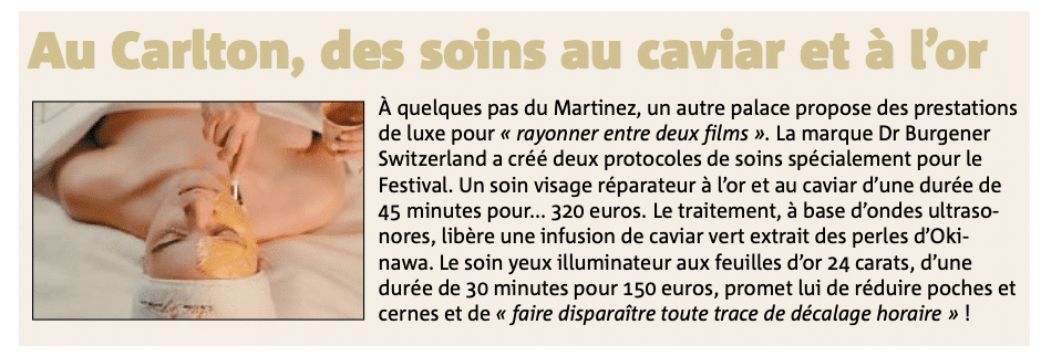 • Journal des Palaces : DR BURGENER SWITZERLAND X L’HÔTEL CARLTON CANNES IMAGINENT DEUX SOINS À L’OR 24 CARATS POUR LE FESTIVAL